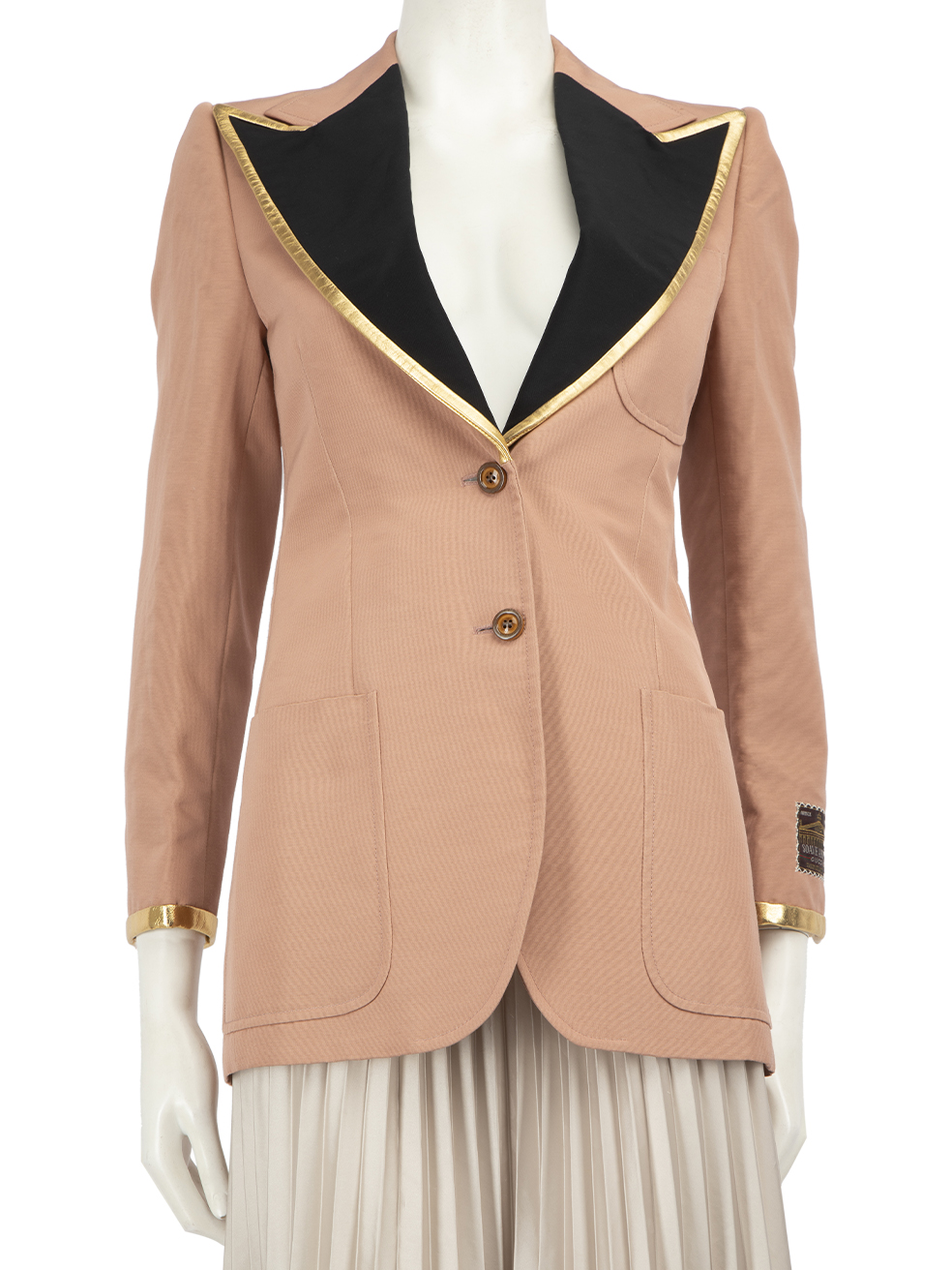 Gucci Pink Contrast Lapel Leather Trim Blazer