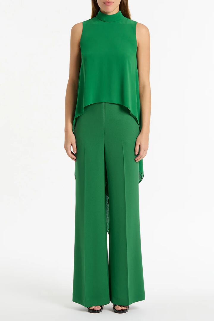 Crafted from signature georgette, the fluted tunic is revisited from the CZ archives. The ethereal billowing of the high-low hemline beautifully envelopes the body, while the elegant neckline is anchored by covered fabric buttons.