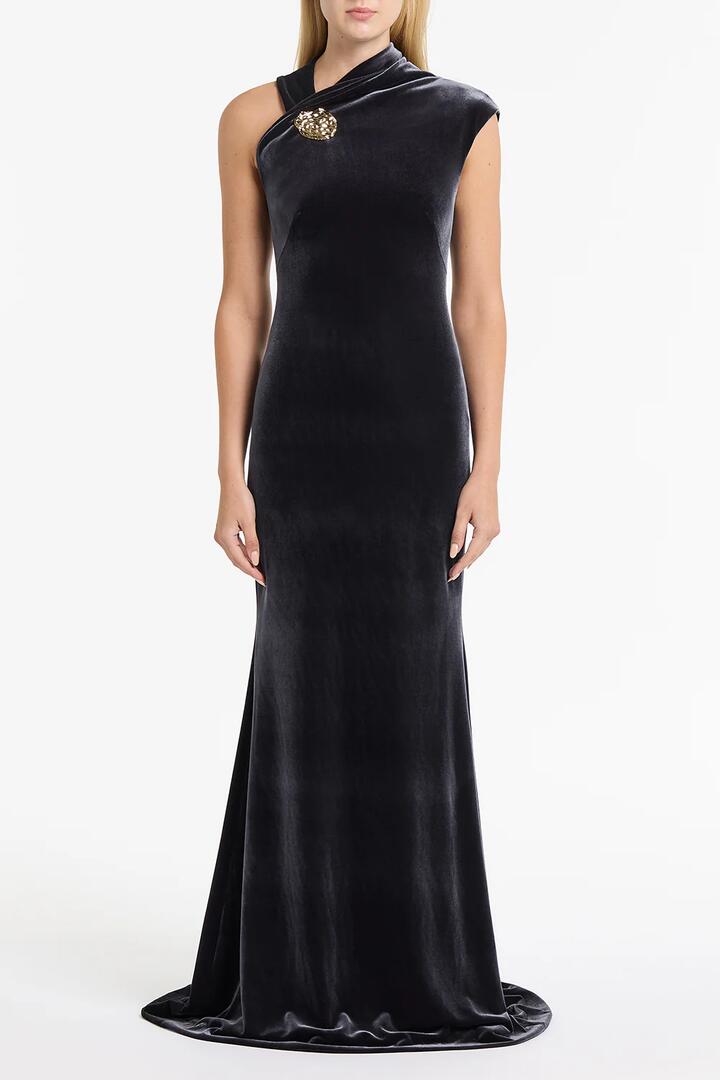 MIDNIGHT VELVET BUTTON GOWN